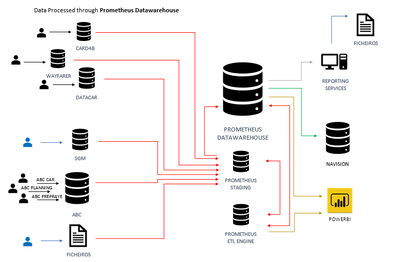 Due to the different nature of these systems, the DevScope team developed a fast and dynamic ETL Framework for Microsoft SQL Server Integration Services (SSIS), allowing for faster design and development of ETL solutions and making it easier to change configurations. Prometheus serves as an intermediary on the entire processing, receiving data from its original databases and transforming it to be used afterward.
